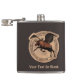 Ett läderplåster som bär logotypen av mytisk flygande moose Aviation i Talkeetna, Alaska, som bärs av företagets busschlotsar. En vingad mos som läggs ovanpå en cirkel med texten FLYING MOOSE AVIATION, TALKEETNA, AK och ESTD 1957. Lägg till ytterligare text. Flygande, glaciärlandningar, last, jakt och fiskecharter. Vi flyger, berätta vart du vill gå.