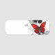 Flygande svart- och rödmorfoflugor namnbricka