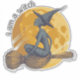 Det här är en söt hallopoldekalk med en häxande som flyger på hennes bom framför måne. Du kan anpassa standardtexten "Jag är en häxa".