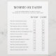 Gör babyduschaktiviteter dubbelt så roligt med vår Dubbla-Sided Baby Shower Game Flyer. Det här smarta designade spelkortet maximerar underhållningen samtidigt som vi bibehåller vårt namnteckning lilla stil och erbjuder två engagerande spel i samma elegant. Smarta designfunktioner: ・ Två spel på ett enda kort ・ Ren, modern typografi ・ Lättläst layout ・ papper utskrift på flygblad för att vara mer kostnadseffektiv. ・ Rymdeffektiv design Spelinformation: Front Side: ・ Scramble-spel i Baby Ord ・ Yrkesmässigt designad layout ・ Tydliga instruktioner ・ Svarsutrymme för gäster Baksida: ・ mamma eller pappa-frågor ・ Interaktiv party-aktivitet ・ Enkel att följa format ・ Istensspel för Perfekt För: ・ Moderna babyduschar ・ Tidsmedvetna värdar ・ Interaktiv gäsunderhållning ・ Samordnade Perfekt-aktiviteter Practical Benchning Fiter: ・ Minskar firande papprare ・ Kostnadseffektiv lösning ・ Enkel distribution ・ slösande gäster som är insatta ・ Behåller sofistikerade estetiska koordinater som är snyggt anpassade till våra andra babyduschsamlingar samtidigt som de tillhandahåller underhållning som inte äventyrar Behålla.