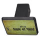 Visa att din kärlek för flygfiske med denna beställnings- hake täcker! Den presenterar en klipsk fiskaresilhouette som överst fångar en stor fisk av en texturerad vis mangrönt, och liknar naturlig kulör bakgrund för bruntet, det ett härligt berg strömmer. Texten läser "den är ett statligt av Mind". Älskare av flygfiske förstår detta meddelande och är stolt att visa deras kärlek av flygfiske. Det finns två storleksanpassar för att välja från.