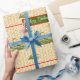 Flygfiske God jul Wrapping Papper. Hand plockade vintage flyger med en bakgrund med brännskador och sepiafärgning. God jul i ett vitt finare-teckensnitt i ett grönt block. Perfekt till flygfiskaren eller kvinnan!
