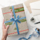 Flygfiske God jul Wrapping Papper. Hand plockade vintage är en flygplan med en bakgrund med brännskador. God jul i ett vitt finare-teckensnitt i ett grönt block. Perfekt till flygfiskaren eller kvinnan!