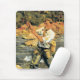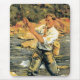 Vintagekonstverk av en klipsk fiskare i en strömma med leda i rör i hans mun