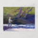 flygfisket på Wissahickon. Fiskare i vatten och kastade sin lina. Fiske konst av ©REIFSNYDER. Scene färger är grönt och blått.
