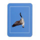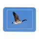 En kanadensisk gäs som flyger i en ljus blå himmel.