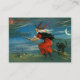 En härlig vintageHalloween visitkort som presenterar en flyghäxa och en svart katt.