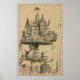 Detta är en utskrift av antiken 1883 bläck över en illustrationsgrafit av "Maison tournante aérienne". Teckning uppvisar en bostadsstruktur upphöjd över taket och designad att rotera och justera i olika riktningar. En passagerare pekar på ett luftskepp med en fiskformad säck i nedre högerna i himlar. En av konstnärens föreställningar för bok om livet under det kommande 1900-talet.av Albert Robida