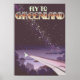 Flyg till Grönland - vintage stil reseaffisch för ett modernt flygplan under flygning till Grönlands destination.