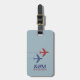 Personlig-luft-temat frimärke med två grafiska flygplan (rött och blått) med prickat linjer, som flyger tillsammans med resenärernas namn och initialer..