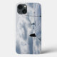 Del av ett flygplan med härlig himmelfullt av fluffiga moln i bakgrunden. Fotografi.