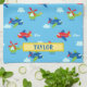 Anpassa namn med flygplan, helikoptrar och moln mönster-grafik till ljusblå himmel-bakgrund. Klicka på Redigera med Design Verktyg om du vill ändra färg och skriva stilar.