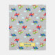 Anpassa ditt barns namn eller monogram på en lekfull tecknad mönster av flygplan, helikoptrar och moln på ljusbakgrunden av grått.