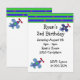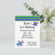 En roligt födelsedagsinbjudan med ett fet gräns i grönt och blått med små röda stjärnor. Två flygplan som flyger omkring i blå skuggor med röda propellrar. Anpassa med all information om party efter behov.