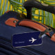 Flygplan med prickad linje mörk blått bagagebricka