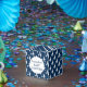 Flygplan mönster mot en marin blå bakgrund. Underbar för babydusch eller barns födelsedag. Matchningsinbjudan, pappert tallrikar, servetter, kandistin och banderoll.