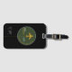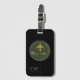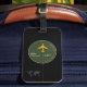 flygplan på grönt resgodsmärke med namn bagagebricka
