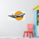 Ett flygplan som flyger mot orange sol. Den här designen ser ut att vara verkligen på dessa Poster