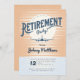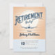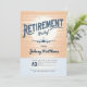 Flyg in i pension med denna fängslande inbjudan! Mot en halvtonssolnedgång i vintagens orange och blå nyanser tar en silhuett av flygplan flykt och symboliserar resan till ett nytt kapitel av avslappning och äventyr. Perfekt för att fira början på ditt välförtjänta pension!