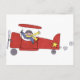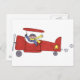 En pojkpilot flyger genom himlar på sitt röda flygplan.