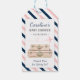 Anpassadets resetaggar gynnar taggar som kan fästas på mini vin/champagne flaskor eller gästfavoriter. Även baksidan kan anpassas. Lämpligt för babyduschar, sprinkler eller annat tillfälle. Helt anpassade! De har gjort för att matcha våra samlingar av reseflygplan.