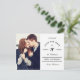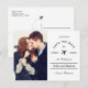 Detta eleganta Save the Date-vykort har en vintage look och är perfekt för ett destinationbröllop. Det har en siluett av ett flygplan med detaljer om bröllopsdatumet i en retrodesign. Ett foto av paret fullbordar detta stilrena kort. Fler detaljer kan läggas till på baksidan.