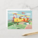 Hundar i dubbelplan flyger över en färgrik scen av grönt, rött och gult. Dessa högflygande ess har en specialleverans till mottagaren! Originalillustration av Noël Snow