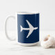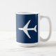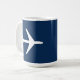Funky White Flygplan Mörk blått Background Coffee/Tea Mugg Kopp för att lägga till dricksprogram för hemmet/kontoret. En coola presenterad/presentidé för alla som har kärlek anpassad design, positiva vibes, himlar, flyg, flyg osv. Airways, flygbolag, himlar, luft. Ändra bakgrunden färg (blå) till kostym stil.