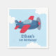 Party förser pappra blöjor med blått och rött propellerflygplan som flyger mellan molnen. Anpassa med party-meddelande för ett flygplan som kallas barns födelsedag party!