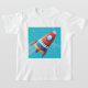 Drömmer om att flyga genom rymden i ett rymdskepp. Då kommer den här designen att besvara den drömmen. Det är från ett färglöst rymdskepp som packar genom rymden. Raketan är flerfärgad och har en ångsplåt ut baksidan. Den ställs in mot en blå bakgrund. Den här flygande rymdfarkosten ser underbar ut på den här flickans t-shirt. Perfekt för dig själv eller som gåva