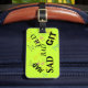 Roligt serie A bagagetagg med lustiga flygplatskoder för att göra en humoristisk fras "MAD BAD LEDSEN OLD GIT".