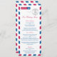 Röd och blå randig Flygpost-design för din destination bröllopsmeny. Om du behöver några design- eller layoutändringar för att fungera bättre för dig, vänligen maila paula@labellarue.com INNAN DU Anpassar eller Lägger din BESTÄLLNING så att en ny mall kan skapas åt dig.