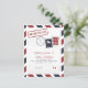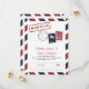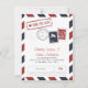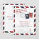 Flygpostinspirerat Spara Datum-kort i Rött och Blått. Falska frimärken och poststämplar för ett resetemat bröllop.
