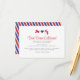 Ett mottagningskort för att samordna med 'Airmail' Inbjudan Suite. Visas i nyanser av Ljust Rött och Kungligt Blått. Utrymme för att skriva ut dina mottagningsdetaljer på framsidan, med ett dekorativt diagonalt randigt mönster på baksidan. Om det behövs kan mönstret tas bort och ytterligare text skrivas ut på baksidan.
