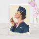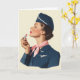 Flygvärdinna från svunna tider applicerar läppstif kort