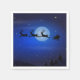 En festlig jultomteillustration. Tomten i sitt sleigh och hans renar flyger över mörk blått natten himlar. Ett lysande måne belyser himlar och man kan se dubbla stjärnor överallt.