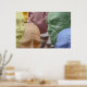 Vår färgstarka poster utskrift innehåller ett montage av fotografier av de Flytande huvudena som installerats av Sophie Cave på Glasgows Kelvingrove Art Galleries and Museum. Det finns över 50 huvuden som var och en visar ett annorlunda uttryck för människans ansikte. Jag har tagit några och lagt till färg i ansikte, med undantag för en Glasgow-desperado vid grund i ram.