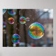 Den här fantastiska bilden fångar ett ögonblick av ren magi, med en samling av begynnande bubblor eller glasorber som är uppslammade mitt i luft. Varje sfär reflekterar omvärlden i ett förvrängt, färglöst objektiv som skapar en vacker blandning av regnbågar och mjukt ljus. Den största bubblan fångar på ett vackert sätt reflektionen från ett träd och avlägset ljus och tillför en aning drömmande och surrealistisk kvalitet till scenen. Bilden väcker en känsla av , stollig och känslig skönhet, perfekt för dem som uppskattar konst, magi och den enkla glädjen av bubblor.