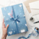 Flytande hjärta dansar mitt i ett serene, snö-liknande landskap belyst med en mjuk, eterisk glöd