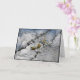 Fintvätt flytande vita blommar av körsbär kombineras med upprivande dammreflektioner av blå himmel, grenar och vita moln för att skapa ett födelsedagskort med en intressant abstrakt.