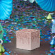 Flytande droppar i ro guld glitter faller över en varm rosa ombre-bakgrund. En elegant och en slående men nyanserad design, perfekt för alla sofistikerade dam i ditt liv.