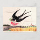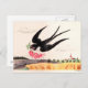 En fågel, en Svälj eller Martin, som flyger på en rustik, lantlig scen med en spricka med blommor från Bleeding Hearts... Av den tjeckiska konstnären Vaclav Fiala. Denna bild har hämtats från ett tjeckiskt telegram från 1947. Václav Fiala (1896-1980) - Tjeckiska målare, grafiska konstnärer, illustratör och etcher. Pupil från den berömda tjeckiske målaren Max Švabinský från konstakademin i Prag, Fiala experimenterade med det populära konstverket stilar under perioden. Från 1930-talet gynnade Fiala realism. Det största subjekt i hans verk var kulturlandskapet. I sin konstnärliga vision följde han Josef Manes klassiska etnografiska studier. Václav Fialas verk framställer det allmänna folkets liv och kultur, som inte påverkas av civilisationens negativa effekter. Hans landskap skildras av landsbygdsbostäder, figurer av land och boskapsgrupper.