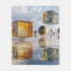 Denna surrealistiska konstverk utforskar en tyst, filmisk stund där solida former driver ansträngningslöst ovanför en spegelblank ökenyta. Genomskinliga glaskuber lyser med skiktade mineralstrukturer, varma bärnstensfärgade nyanser och svala marmorerade mönster, medan polerade sfärer svävar i närheten och reflekterar himmel, land och ljus med hypnotisk klarhet. Horisonten sträcker sig oändligt och förankrar scenen i stillhet samtidigt som den förstärker dess drömlika suspension.