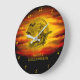 Flytande häxa med svart katt, halloween natt stor klocka