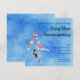 Illustration med färgpenna av fyra Koi eller Karpar, flytande i en damm med blått vatten, en trevlig present till alla som älskar fisk eller natur. Matchar också: