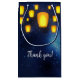 En stjärnklar natt himmel full av upplysta gyllene, flytande lyktor sätter scenen för en vacker avslutning på en fest på denna unika presentpåse. Perfekt för presentgivning eller för att hålla presenter vid ett bröllop, endast mottagning bröllop, repetition middag, Diwali firande, årsdag, brud shower, makarnas shower eller födelsedagsfest. Finns med matchande produkter.