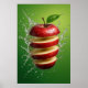 En livfull digital konst av ett rött äpple skuret i flytande segment med realistiska vattensprut. Perfekt för kök, matsal eller modern väggdekor. ❃ 𝗖𝗢𝗣𝗬𝗥𝗜𝗚𝗛𝗧 ❃