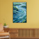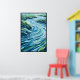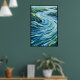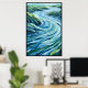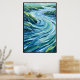 Den här oljemålningen har stora, flytande penseldrag som framkallar flodströmmar genom texturerade impastoskrapor. Dess lugnande blått och grönt palett skapar en stillastående, djupgående perfekt för serene, taktila fokuserade utrymmen.