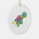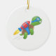 Flytande sköldpadda med en röd jetpack keramisk pr julgransprydnad keramik