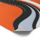 Utformningen har en slående abstrakt i flytande, vågenerande kurvor i fet orange, djup svart, ljusvit och mjukt grått. Linjer vrider och sveper diagonalt över arbetsytan och skapar en dynamisk känsla av rörelse och rytm. Kontrasten mellan ljus- och mörk-toner understryker den elaka orangen, ge teckningen med ett energiskt och flytande utseende. Den totala effekten påminner om lågor, vätskerörelser eller en kraftfull ström av energi som fångas i rörelse.